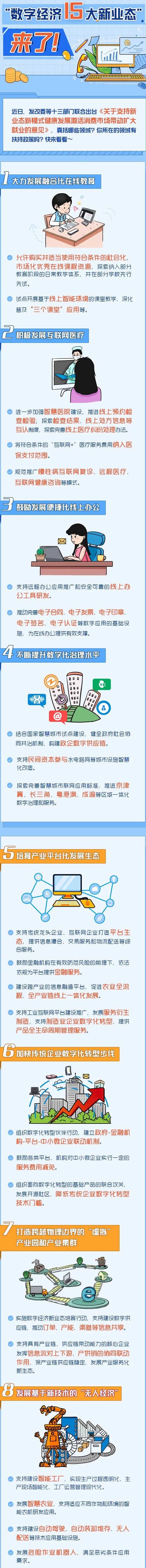 新出臺的舉措重點(diǎn)支持15種新業(yè)態(tài)新模式——在線教育、互聯(lián)網(wǎng)醫(yī)療、線上辦公、數(shù)字化治理、產(chǎn)業(yè)平臺化發(fā)展、傳統(tǒng)企業(yè)數(shù)字化轉(zhuǎn)型、“虛擬”產(chǎn)業(yè)園和產(chǎn)業(yè)集群、“無人經(jīng)濟(jì)”、培育新個體經(jīng)濟(jì)支持自主就業(yè)、發(fā)展微經(jīng)濟(jì)鼓勵“副業(yè)創(chuàng)新”、探索多點(diǎn)執(zhí)業(yè)、共享生活、共享生產(chǎn)、生產(chǎn)資料共享及數(shù)據(jù)要素流通。