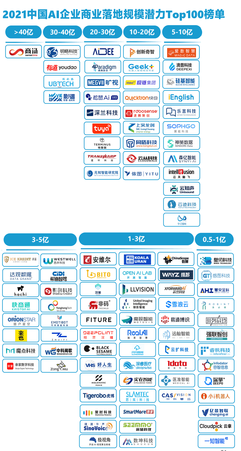 特斯聯(lián),云天勵(lì)飛,安維爾,曠視,云知聲,滴普科技,商湯科技,明略科技,云叢科技,睿凡科技,深蘭科技,依圖,模點(diǎn)科技,元知智能研究所