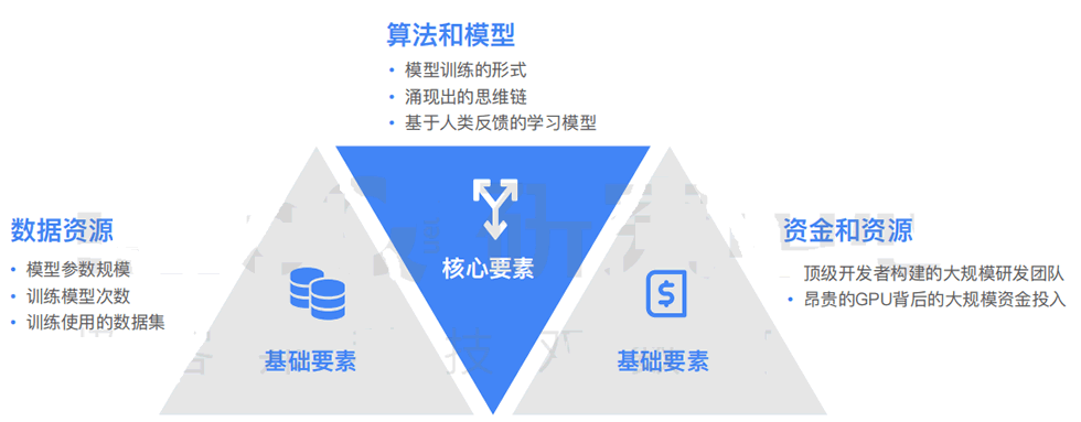 雖然數(shù)據(jù)、資金資源為大語言模型研發(fā)設置了G門檻,但對于實力雄厚的大型企業(yè)仍然是挑戰(zhàn)較小的。算法和模型是目前區(qū)分大語言模型研發(fā)能力的核心 要素。算法和模型影響的的模型豐富度、模型準確性、能力涌現(xiàn)等都成為評價大語言模型優(yōu)劣的核心指標。