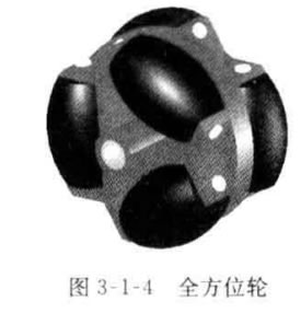 全方位輪種類很多,本節(jié)以圖3-1-4中所示的全方 位輪為例進(jìn)行討論,它的組成是在輪轂的外緣上設(shè)置有 可繞自己的軸旋轉(zhuǎn)的輥?zhàn),且均勻分布于輪轂周圍,這 些輥?zhàn)虞S線(E) 和輪轂軸線(S,) 的夾角a 為90°。該麥 卡納姆輪由雙排自由滾動(dòng)的輥?zhàn)咏M成,使得輪子在地面 滾動(dòng)時(shí)形成連續(xù)的接觸點(diǎn)。而在運(yùn)動(dòng)時(shí)輪轂是驅(qū)動(dòng)機(jī) 構(gòu),輥?zhàn)邮菑膭?dòng)機(jī)構(gòu),因此在本節(jié)中主動(dòng)輪由圖3-1-5 所示車輪輪轂與邊沿輥?zhàn)咏M成,從動(dòng)輪為車輪輥?zhàn),? 動(dòng)輪、從動(dòng)輪與地面接觸點(diǎn)均為輥?zhàn)优c地面的接觸點(diǎn)。