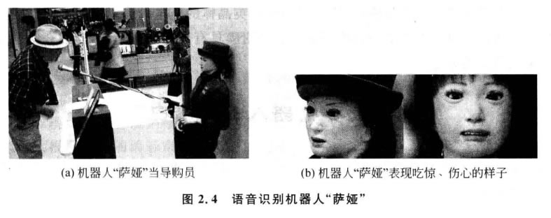 日本著名的東京高島屋商場為了解決顧客排長隊(duì)購物難的問題,引入了一款語音識 別機(jī)器人“薩婭”當(dāng)導(dǎo)購員,如圖2.4所示。“薩婭”能夠用超過700種不同的語音方式對 購物者的問題和投訴做出反應(yīng),它會告訴顧客去哪層樓能夠買到他們所需的商品,還能 和他們閑聊幾句,但是有時(shí)也會無法“溝通”。曾有一位記者問“薩婭”問題,可能是因?yàn)? 他口音太重,“薩婭”聽不懂,一直指著洗手間的方向,無法告訴記者所要去的商場樓層。 雖然“薩婭”的面部動作還存在一些不足,但是它表現(xiàn)高興、傷心或生氣時(shí)是很逼真的。 盡管“薩婭”是一個語音識別服務(wù)機(jī)器人,但是它像其他日本人那樣講禮貌,彬彬有禮。