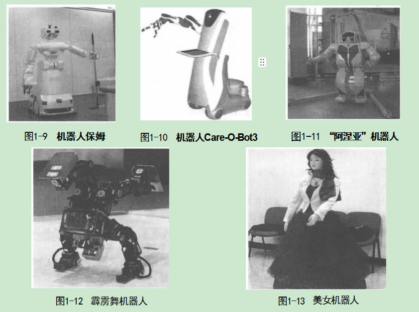 圖1-11所示機器人是俄羅斯利用“新紀元”公司許多d特研究研制的人形機器人“阿 涅亞”,這款機器人是一種能夠雙腳行走,還能與人對話的服務機器人,它擁有世界先進的 機械結(jié)構(gòu)和程序保障系統(tǒng)。