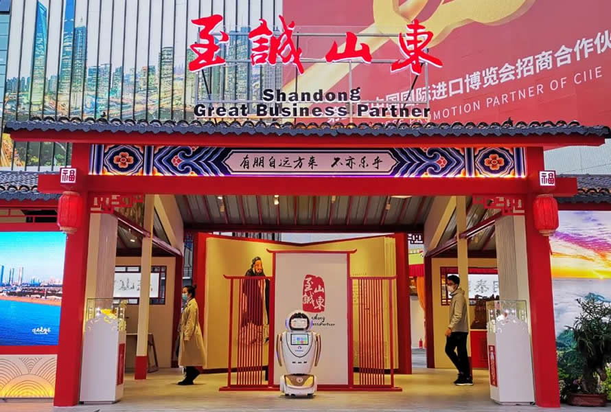 2020年11月5日,山東省委副書記、省長(zhǎng)李干杰等L導(dǎo)在進(jìn)博會(huì)巡展時(shí),智能迎賓講解機(jī)器人“創(chuàng)創(chuàng)”在廣場(chǎng)“至誠(chéng)山東”展區(qū)熱情接待了李干杰省長(zhǎng)一行。